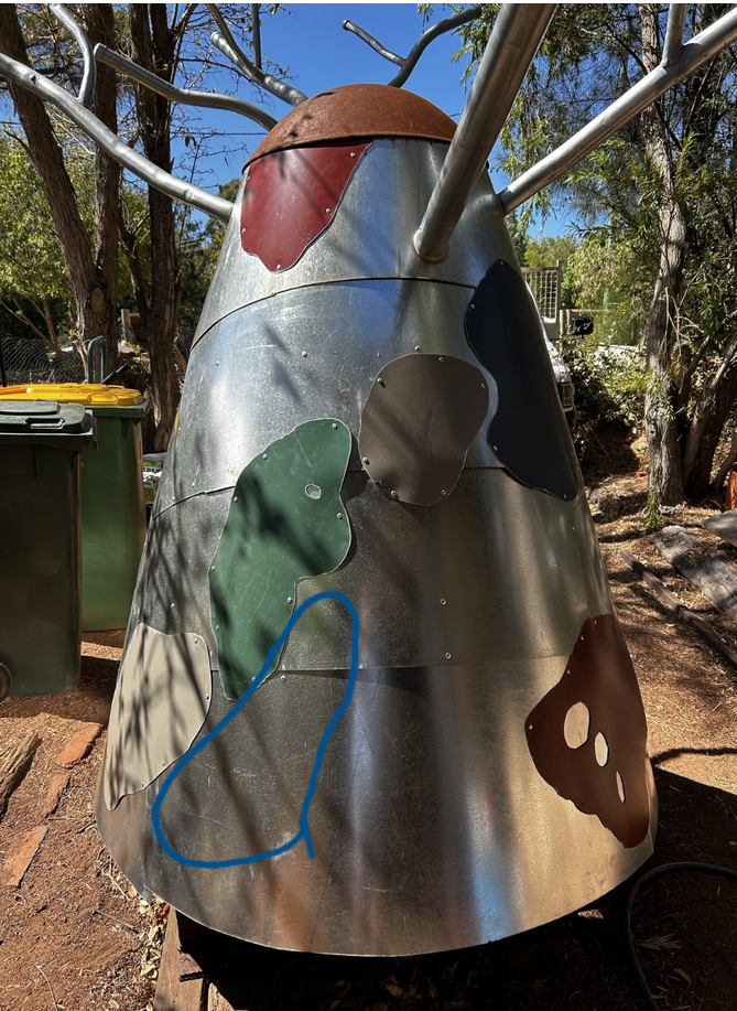 The sculpture is near completion and will be installed near the Community Pavilion in April 2024.
